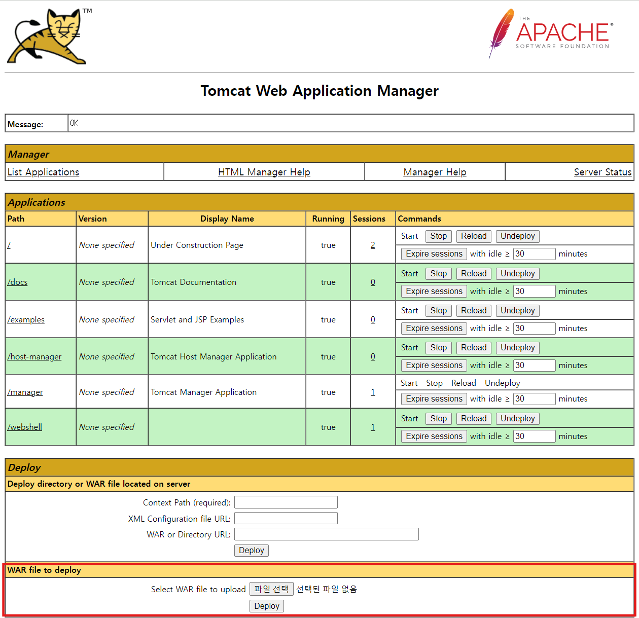 검색해서 알아낸 거지만 Tomcat Manager는 "url:port/manager/html"이라고 한다.