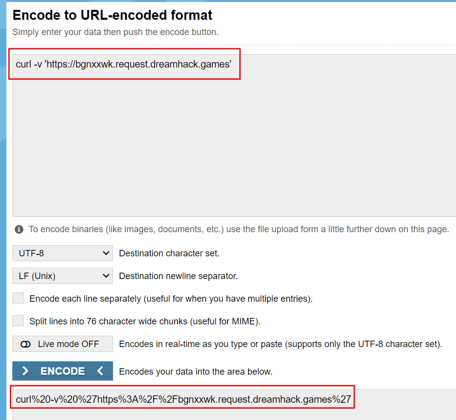 명령어는 똑같다 추가된 것은 URL Encode이다.
