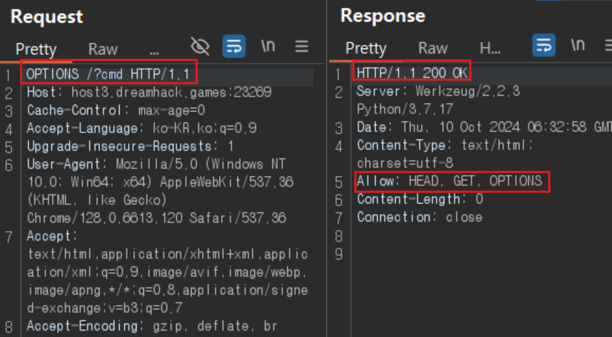 os.system(cmd)를 실행시키기 위해서는 GET 방식이 아닌 다른 방식을 이용해야 한다는 것이다.