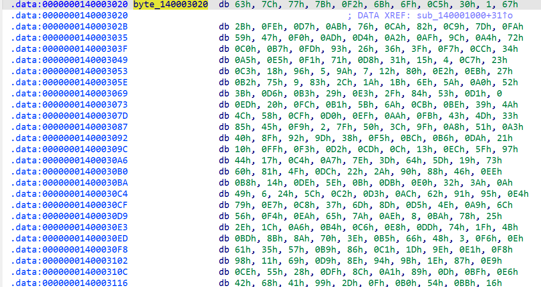 byte_140003000의 배열값들이다.