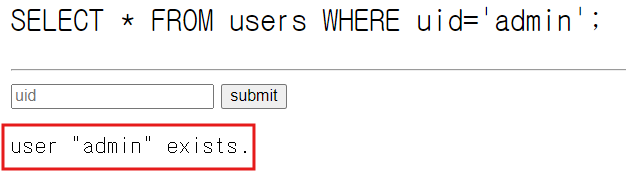 uid에 admin을 입력했더니