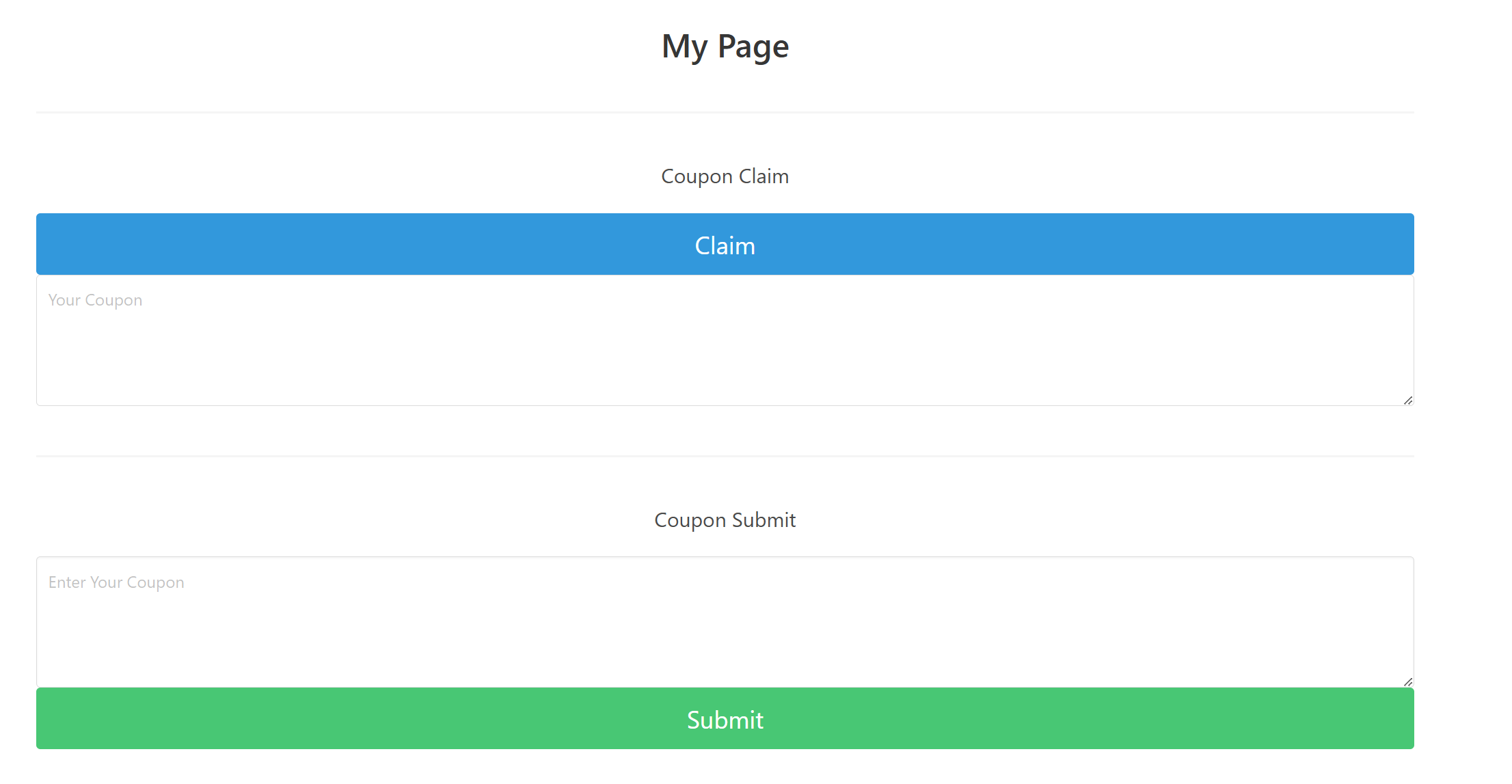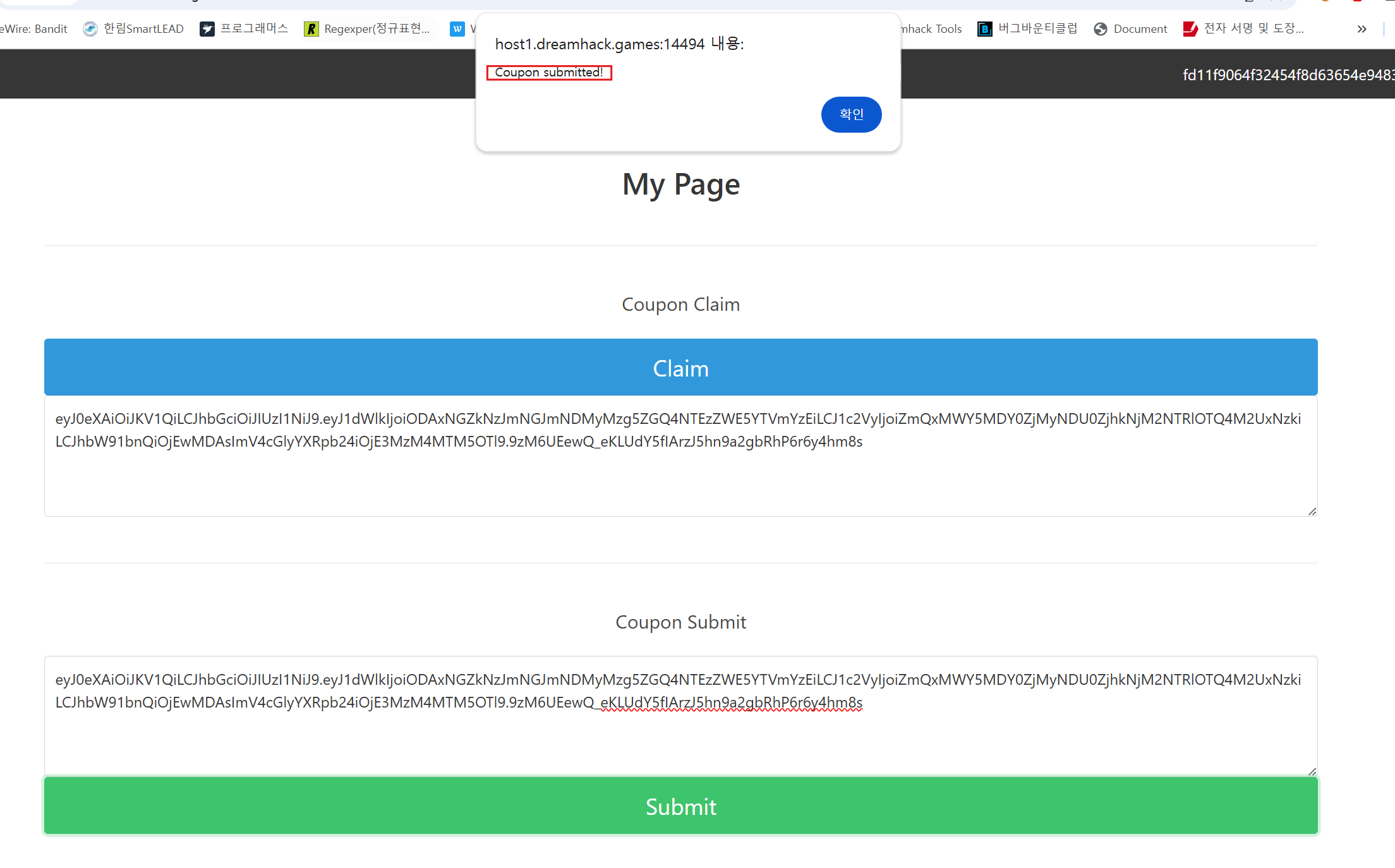 Coupon Claim을 누르면 쿠폰 값을 주고 그 밑에다가 제출하는 식인거 같다.