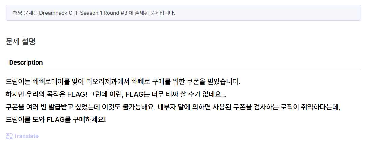 힌트에서는 사용된 쿠폰을 검사하는 로직이 취약하다고 하니 그걸 중점으로 한번 보자.