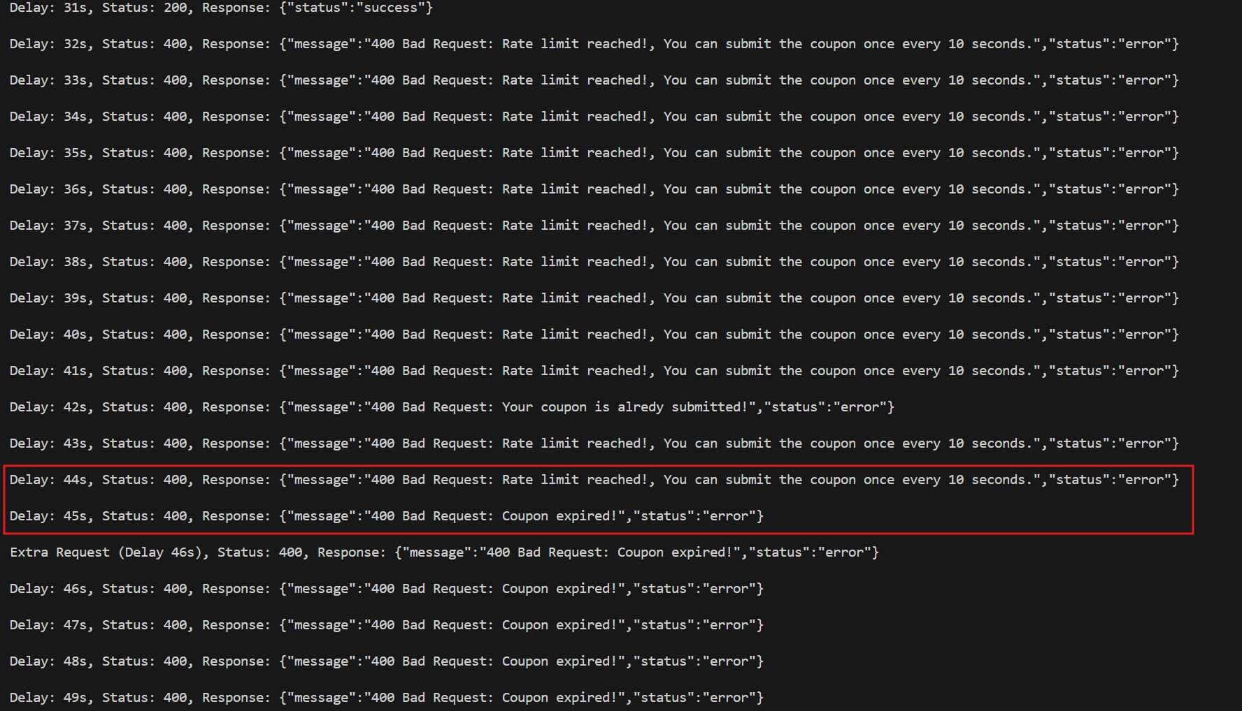 쿠폰 제출이 너무 빠르면 BadRequest를 출력시키고 속도 제한에 걸리게 한다.