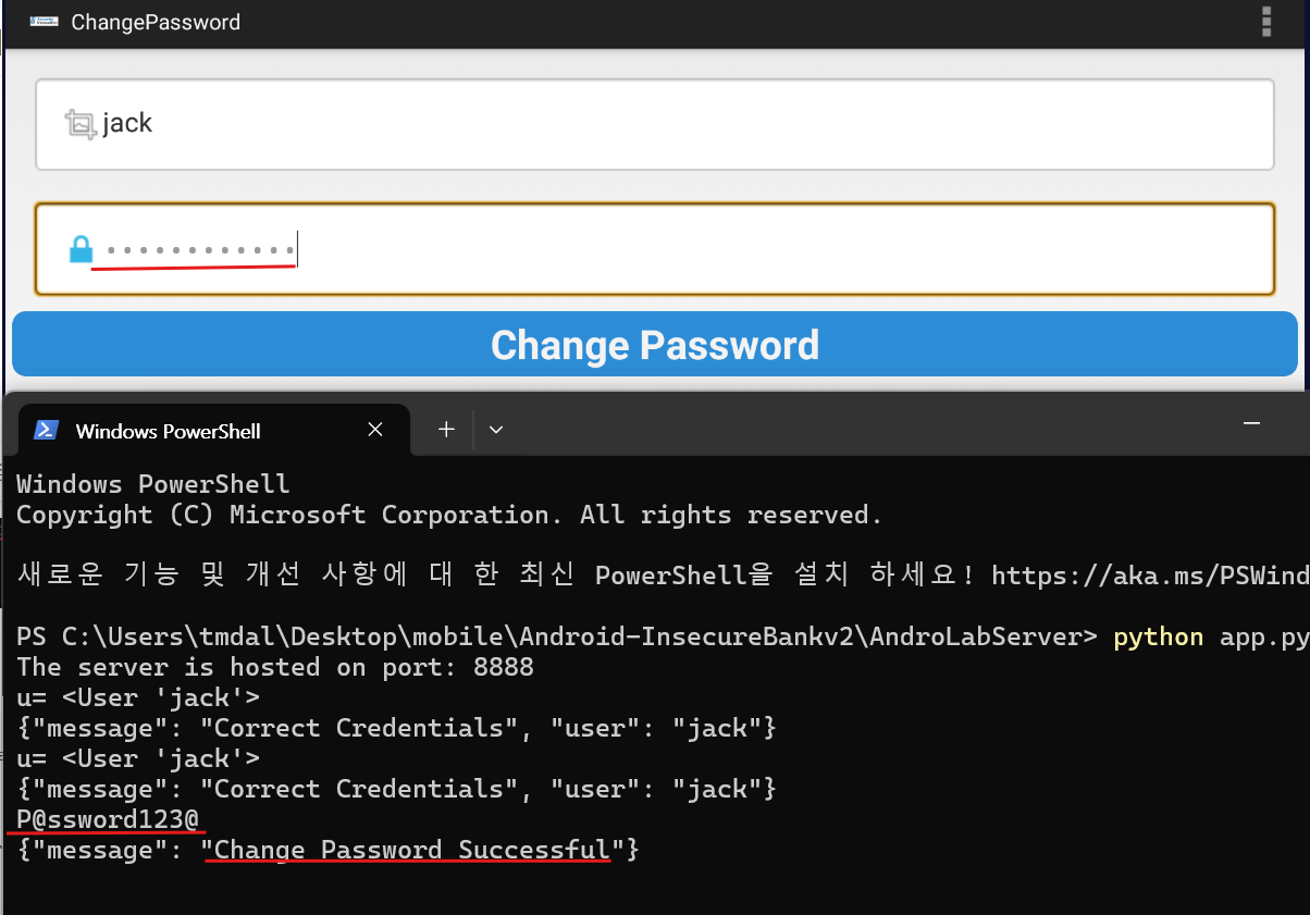 실행할 액티비티명 -> com.android.insecurebankv2.ChangePassword