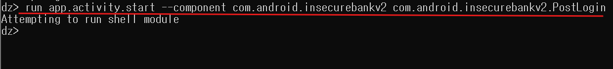 run app.activity.start --component com.android.insecurebankv2 com.android.insecurebankv2.PostLogin