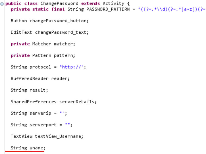 com.android.insecurebankv2.ChangePassword -> 비밀번호 변경 기능 제공하는 액티비티