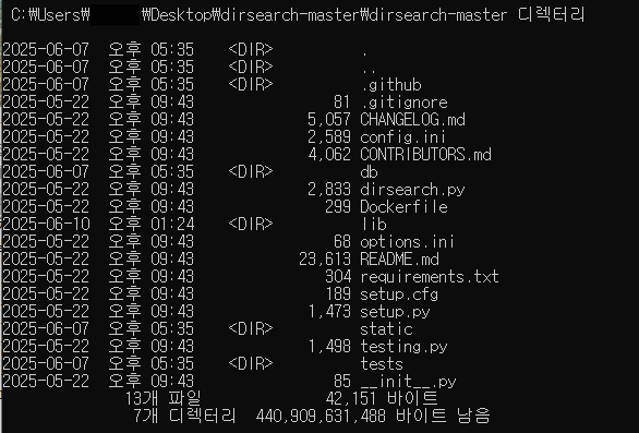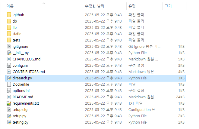 압축을 풀어서 dirsearch-master 폴더를 열면 해당 파일들이 나열되어 있다.