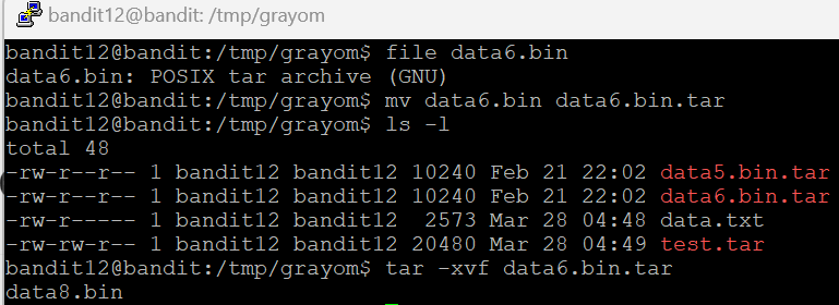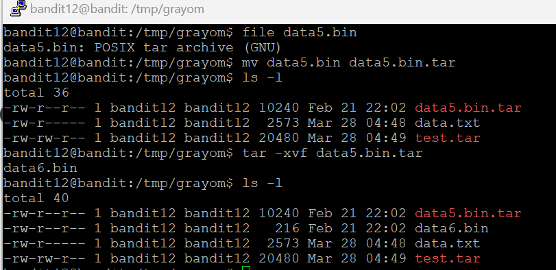 똑같이 data5.bin 이라는 파일을 보니 tar로 또 압축되어 있다. 똑같이 풀어보도록 하자