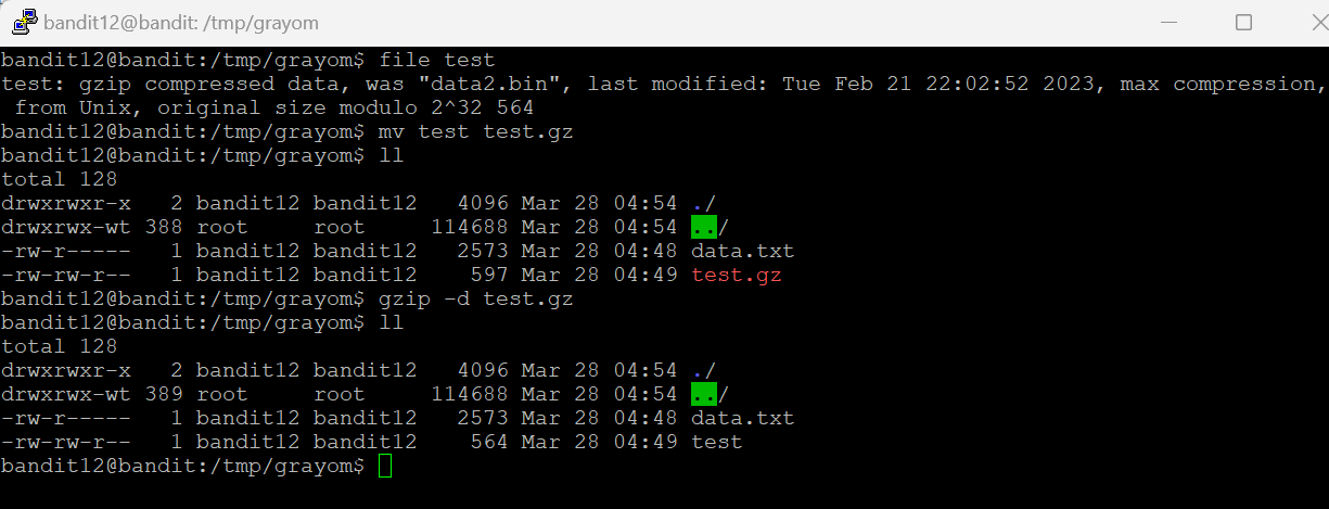 test의 파일의 종류를 확인해 보았더니 'gzip'으로 압축된 파일이라고 이야기해 준다.