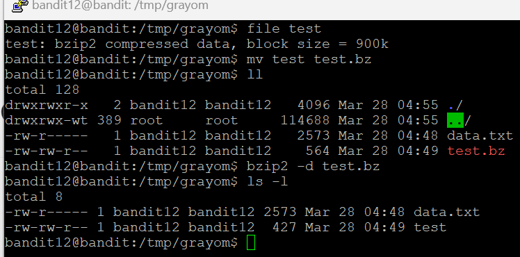 압축을 풀고 다시 test 파일의 종류를 봤더니 이번엔 bzip2 가 나온다.