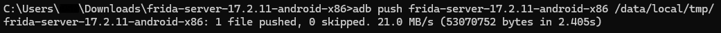 adb push frida-server-[버전정보 입력] [AVD 경로 입력]