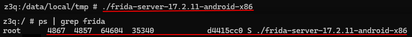 Frida 클라이언트와 통신할 수 있는 Frida 서버를 AVD 내부에 설치해야 한다.