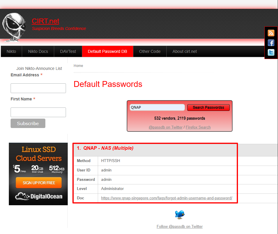 Default Passwords | CIRT.net