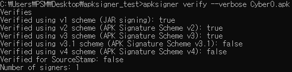 apksigner verify --verbose [apk 이름]