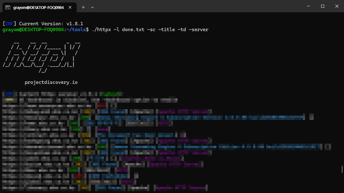 그다음 도메인 주소가 적혀있는 done.txt 파일을 이용해서 httpx에 입력값으로 넣어준다.