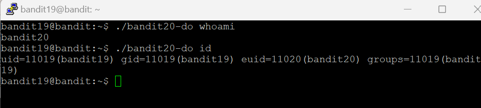 bandit20-do를 사용하면 bandit20 행세를 할 수 있다는 것이 핵심이다.