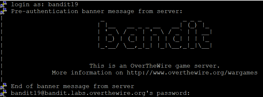 Level 18에서 가져온 키 값을 복사해서 bandit19에 접속하자.