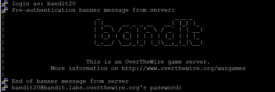 그러면 bandit20 의 비밀번호를 전송시켜 주면 bandit21의 비밀번호를 알려준다는 이야기가 된다.