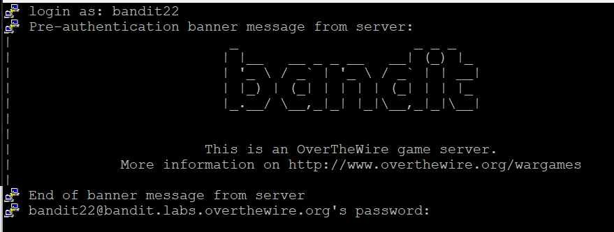 Level 21에서 가져온 키 값을 복사해서 bandit22에 접속해 보자.