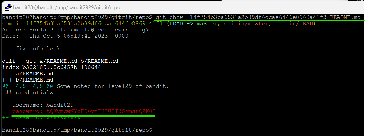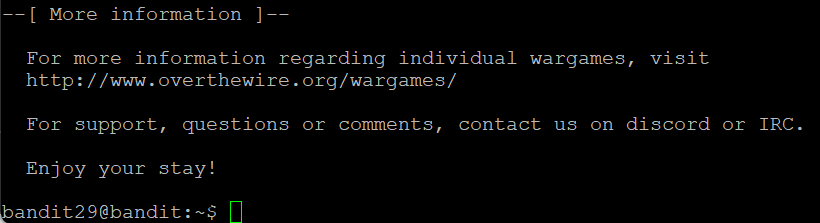 여하튼 수정하기 전 패스워드에 적혀있던 암호를 치니까 bandit29에 접속이 되었다.