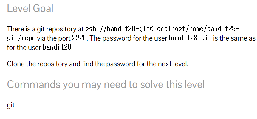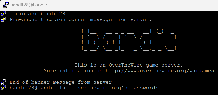 Level 27에서 가져온 키 값을 복사해서 bandit28에 접속해보자.