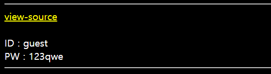 문제를 들어가면 ID : guest , PW : 123 qwe로 되어있다