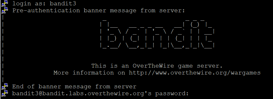 bandit3 계정으로 접속되었다.