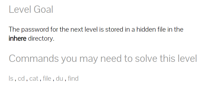 힌트 내용은 inhere 이라는 디렉터리 안에 hidden file 이 있다고 한다.