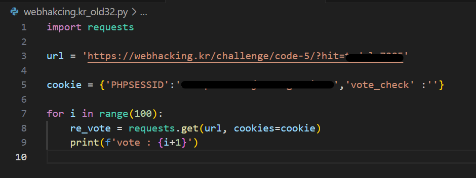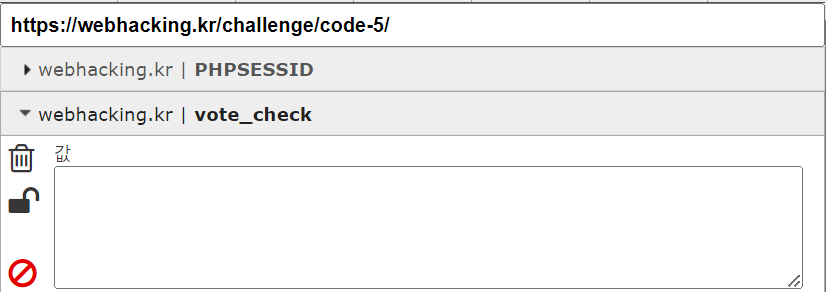 PHPSESSID는 현재 페이지에 있는 ID를 대입하면 된다 vote_check는 공백이여야지 투표권이 생기니 공백으로 두자