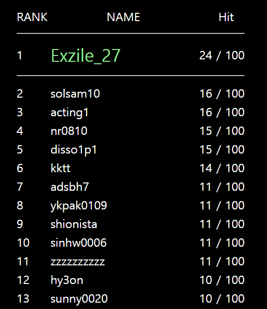 값을 공백으로 바꾸고 1등에게 투표를 했는데 아까 26이었던 'Hit'가 '27'로 변했다.