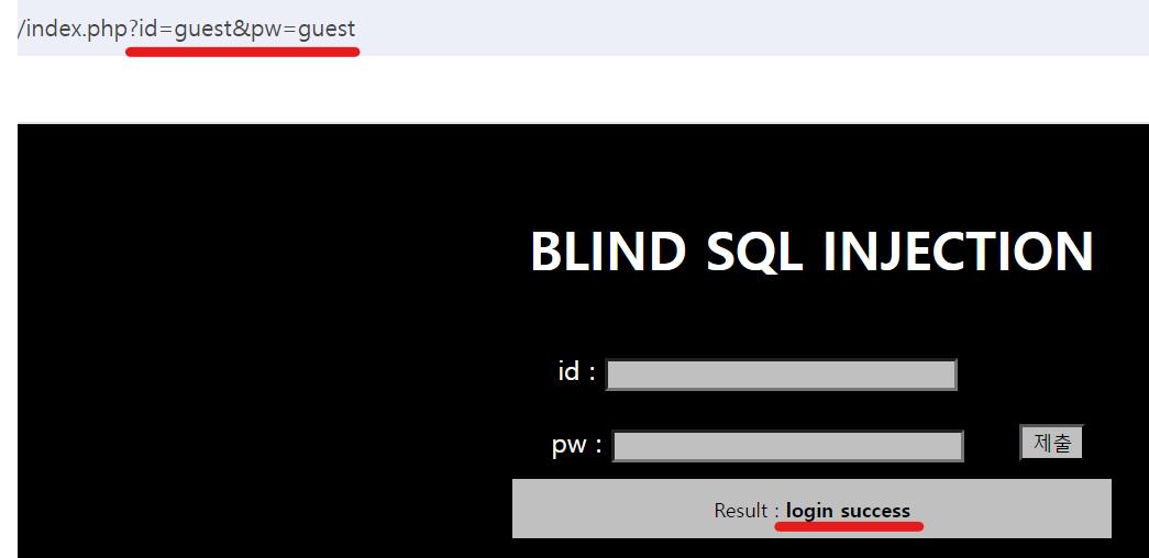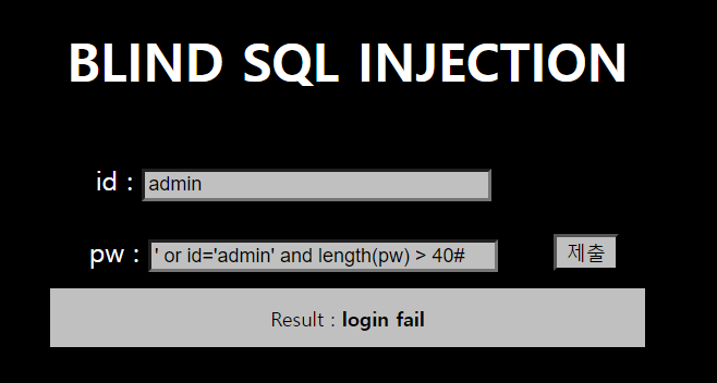 'login fail' 즉 "거짓"이라는 결과 가 나왔다고 할 수 있다.
