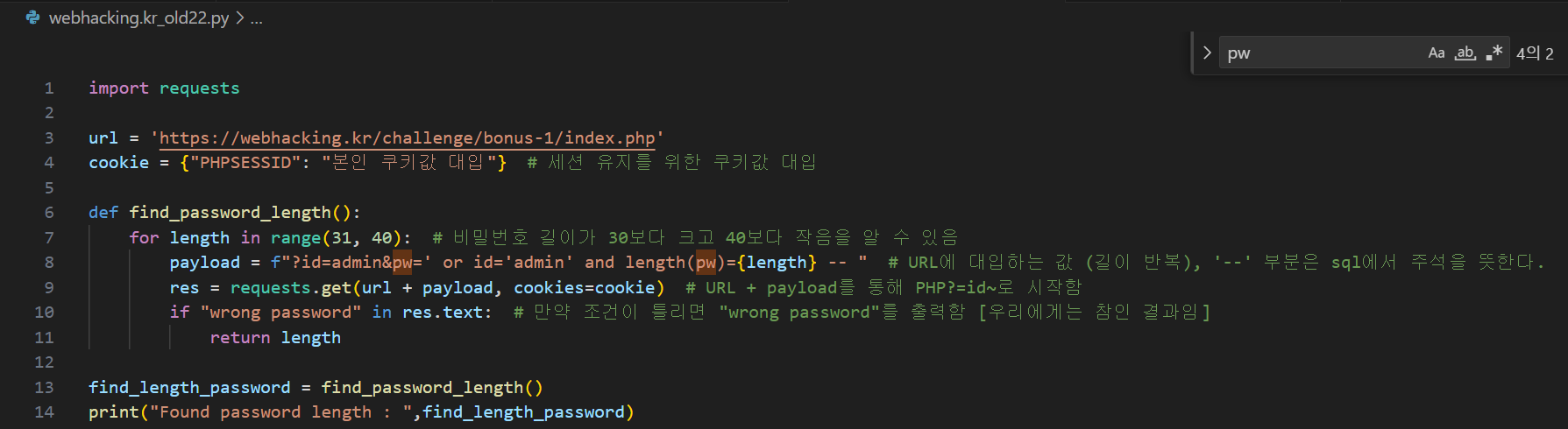 그러면 조금 줄인 30 보다 pw length 가 큰지 물어봤는데