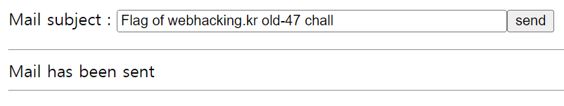 $Mailsubject = 'Flag of webhacking.kr old-47 chall';