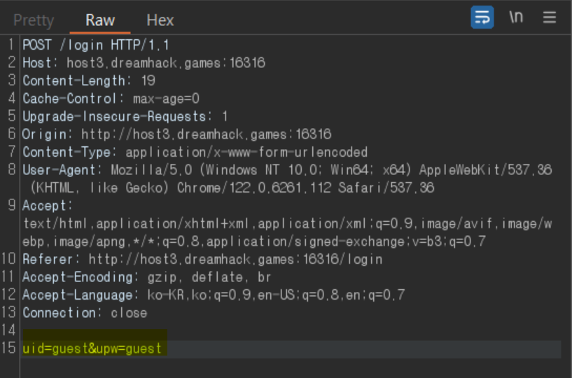 패킷을 잡아보니 uid, upw 가 나와있고 여기서 level를 같이 엮어 집합 연산자인 UNION을 사용하도록 하자.