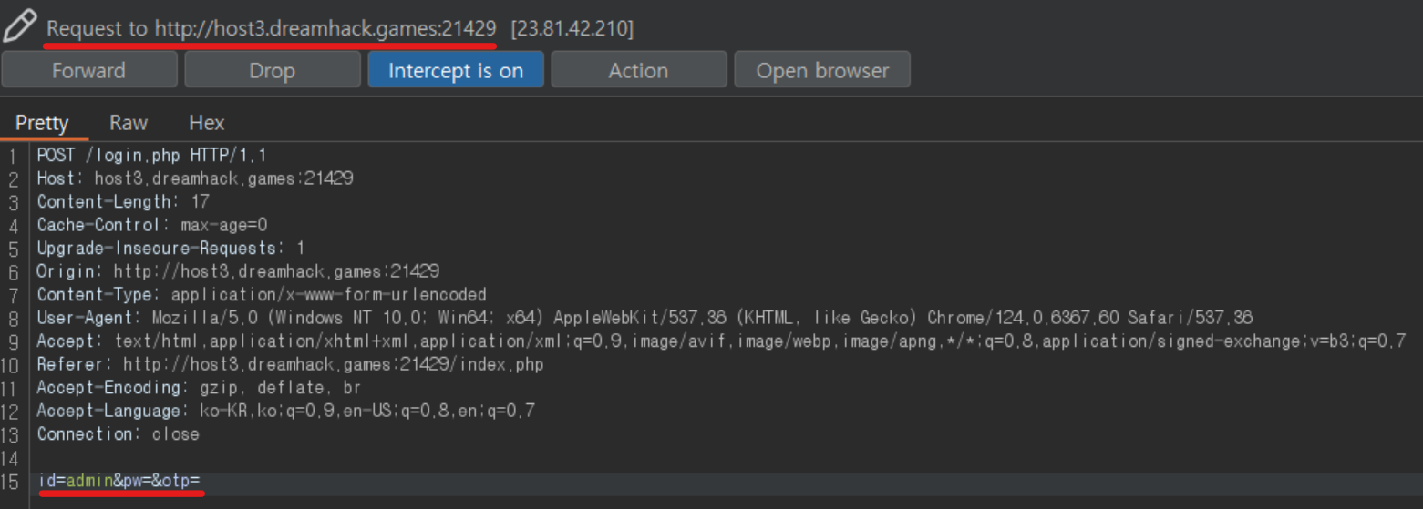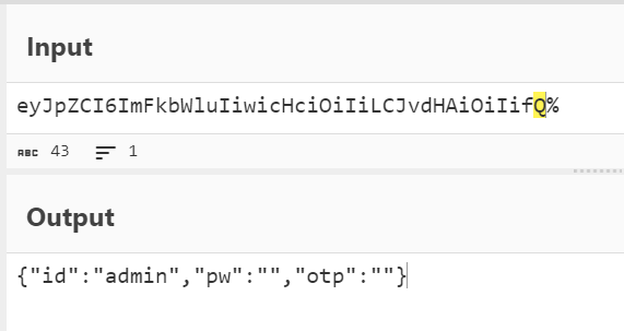 그렇다면 pw, otp에 알맞은 값을 base64로 인코딩 시켜 Forward 한다면 플래그가 출력되는 것이다.