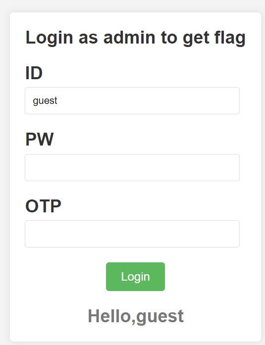 일단 ID에 "admin"을 입력한 결과 "OTP fail" 이 출력되는 모습을 볼 수 있다.