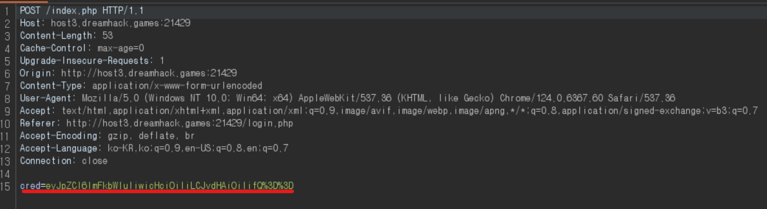 cred 가 base64 인코딩 되어 전송되고 있다.