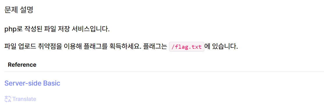 파일 업로드 취약점을 이용해서 플래그를 획득하라고 한다.