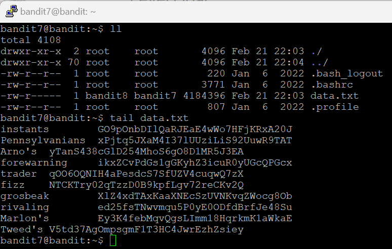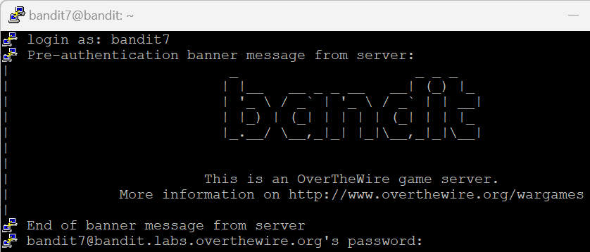 Level 6에서 가져온 키 값을 복사해서 bandit7에 접속을 시켜보자